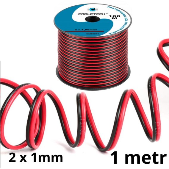 Wytrzymały kabel CCA 2x1,0mm od CABLETECH - idealny do zasilania taśm LED i instalacji niskoprądowych, zapewniający stabilne działanie nawet na długich odcinkach.
